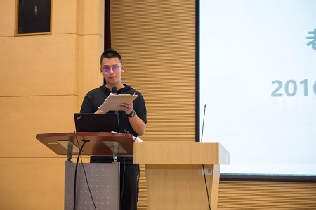 接下来, 2017级本科生周子豪同学作为新生代表讲述了选择高分子科学系的原因以及对未来学习生活的期待。“如今我们已经开始了专业学习,是时候应该完成蜕变。我希望每个同学在今后的生活中能够不局限于书本,仰望星空,脚踏实地。我真挚地祝愿大家都能够在高分子科学找到自己的人生价值,获得人格的升华。愿大家洗净铅华,相伴而行,梦想再出发!”