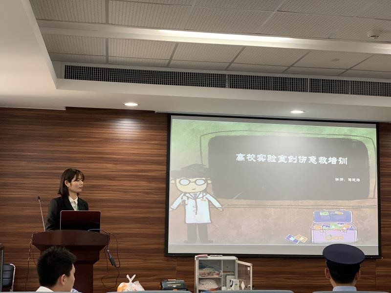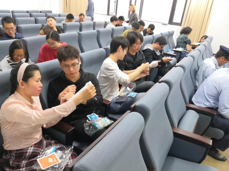 首先,张老师简单通报了近期学校和我系安全工作的情况,介绍了开展本次培训的目的和意义,强调了做好实验室安全工作的重要性。随后傅老师从心肺复苏的应急抢救、紧急医药箱和应急物品柜的正确使用和注意事项等三个方面进行应急处置培训。