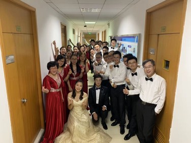 2016级博士生 赵岩:从九月初第一次相聚在高分子楼,经过十余次排练,终于获得了这来之不易的金奖。赛前,大家互相帮忙整理衣服、带领结、化妆,望着对方红扑扑的脸蛋,此刻我们合唱队俨然成为了一家人。站在舞台上,灯光猛然地打在我的脸上,前面指挥抬起手后,钢琴声也在此时响起,接着我们的声音开始环绕整个礼堂。上台后四肢有些僵硬的我,听到周围人熟悉的声音后,身体也渐渐地放松了下来、脸上也露出了柔和的微笑,我想这就是合唱的力量吧。最后和弦凝在一个完美的高音,我们做到了!现在回想起来,依然很怀念每一次大家在一起练声、唱谱、唱词、分声部练习的那段日子。能够在复旦的最后一年里参加这次合唱比赛,满足了我一个心愿!