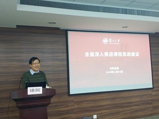 为进一步推进课程思政建设工作深入开展,促进专业教育和思想政治教育同向同行,帮助学生塑造正确的世界观、人生观、价值观,11月24日下午,高分子科学系特邀校本科生院副院长、教务处副处长徐珂教授在江湾校区化学楼B2085给系教职工进行“全面深入推进课程思政建设”专题辅导报告会,全系教职工聆听了报告。系党委书记刘顺厚主持报告会。