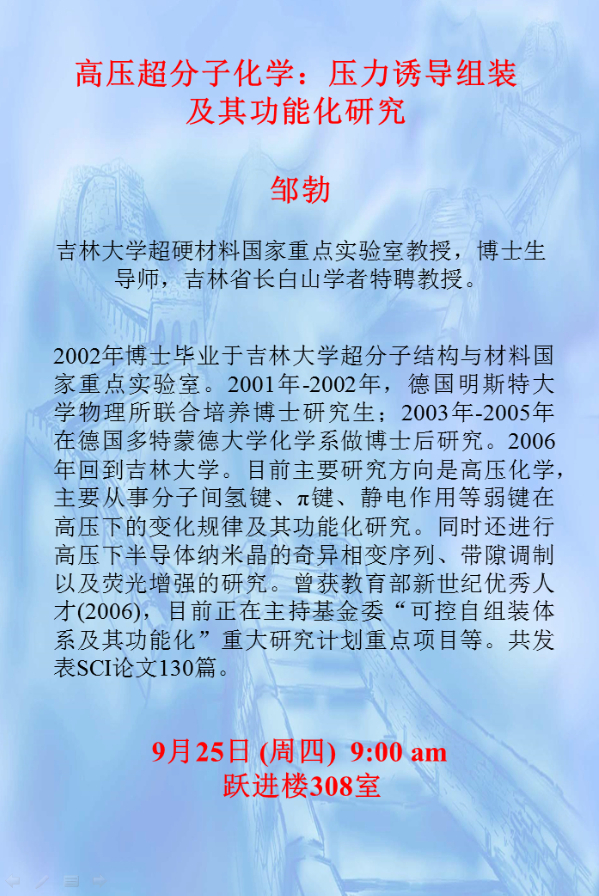 高压超分子化学:压力诱导组装及其功能化研究