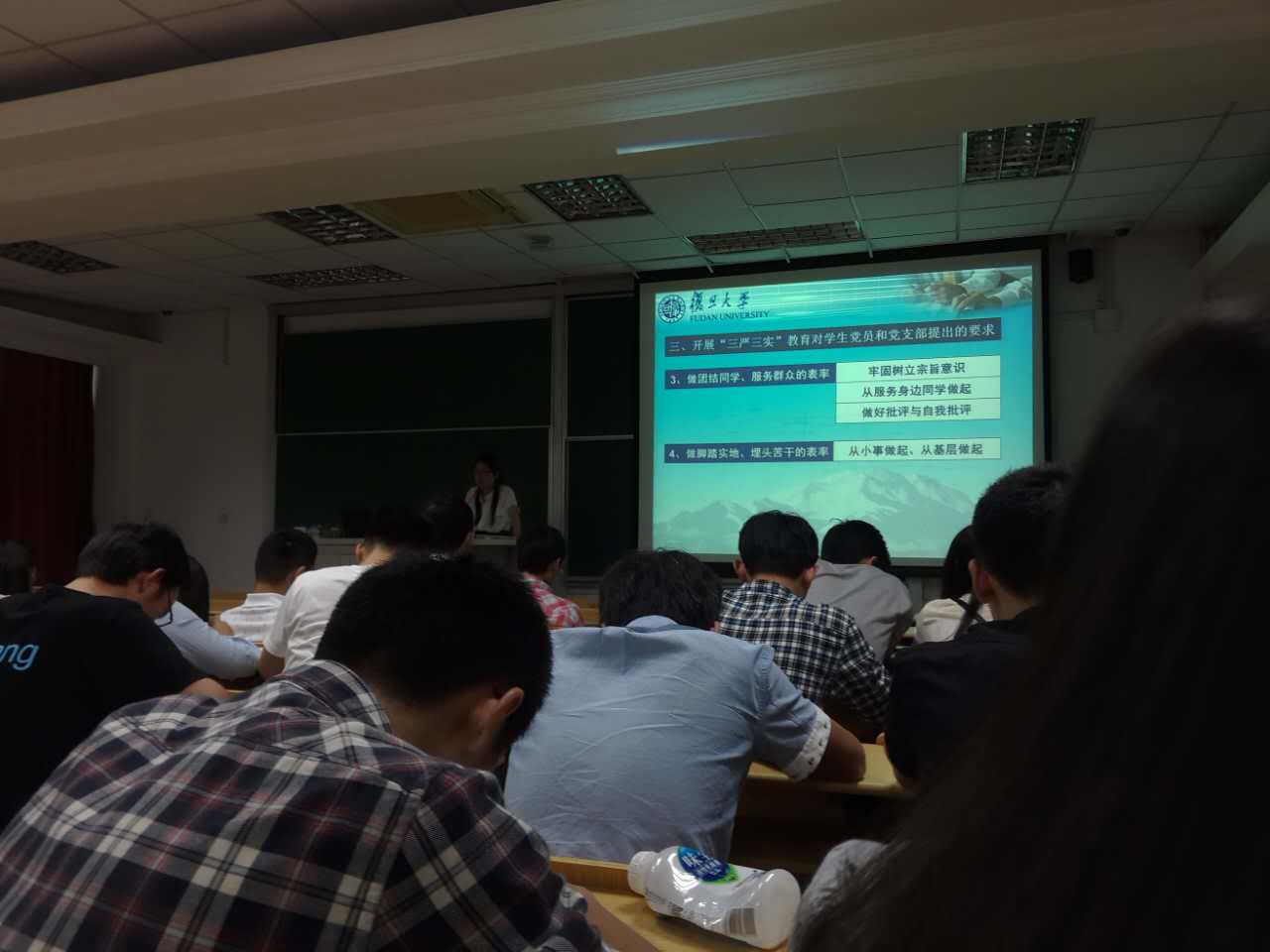 本次专题党课有全系6个学生支部一百五十余人参加,4101教室济济一堂,而高分子科学系学生党员的三严三实学习教育活动,将绝不仅仅只在这样一个下午、这样一间教室