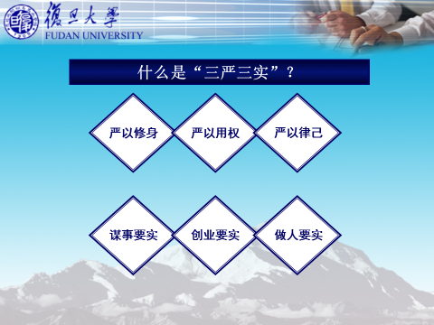 朱莹老师首先强调了在学生党员中开展“三严三实”学习教育的意义,是进一步加强学生党员队伍建设、提高思想政治素质的需要,是进一步落实校党委文件精神、加强基层党建工作的需要,也是进一步营造良好校风学风、提高人才培养质量的需要。朱老师引用的一名入党积极分子的话令人尤为触动, “我们党是中国特色社会主义事业的领导核心,如果我们作为复旦的学生都不积极申请加入这个党,那么我们准备把国家未来的建设任务交给谁?”这样的气魄和觉悟再次加深了学生党员的社会责任感和历史使命感。