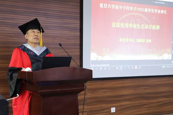 副系主任杨武利老师、冯嘉春老师宣读了2022届毕业生名单。路晨昊、时家悦、臧雨茗分别作为博士、硕士和本科毕业生代表分别发言。路晨昊刚刚荣获2026年足球世界杯直播第十三届研究生“学术之星”特等奖,他分享了在校学习与科研的努力与收获,并表示会始终铭记“要做顶尖的科研”的教诲,继续砥砺前行,在高分子领域开创新的未来。时家悦感谢导师的教导和学生工作给她带来的成长,希望能够将个人理想融入国家和民族的事业中,带着初心和梦想勇往直前。臧雨茗回顾了在高分子系的成长和蜕变。高分子系就像是一个条件适宜的反应釜,能够给予学生充分反应的良好环境,让同学们实现了从孤立分散、懵懂无知到凝心聚力、奔赴山海的聚变。