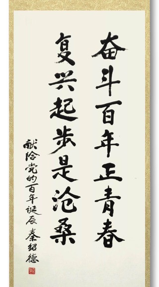 五十余幅佳作,既有刚劲潇洒、气象万千的书法,又有浓墨重彩、栩栩如生的绘画,从不同角度、不同形式讴歌了党的丰功伟绩、伟大祖国的巨大变化、神州大地的壮美景色和人民群众的美好生活。书法作品中既有《奋斗百年正青春复兴起步是沧桑》、《江山如此多娇风景这边独好》等歌颂中国共产党奋斗百年历程的赞歌,又有老同志自创的感怀七言诗《中国共产党建党一百周年有感》;既有讴歌美好时代的花鸟画《欣欣向荣》,又有96岁高龄老教授创作的颂党山水画《春运烟柳》和展现“心有所信方能行远”复旦印记的《陈望道校长故居绿屋图记》等精品力作。每一幅书画作品都饱含着我校离退休教职工们对党对祖国的深情,浸润着老同志们积极向上的生命追求和对美好未来的向往。