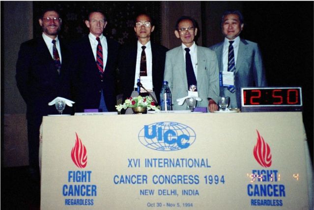汤钊猷任16届国际癌症大会肝癌会议主席与特邀演讲者合影(1994年摄于新德里)