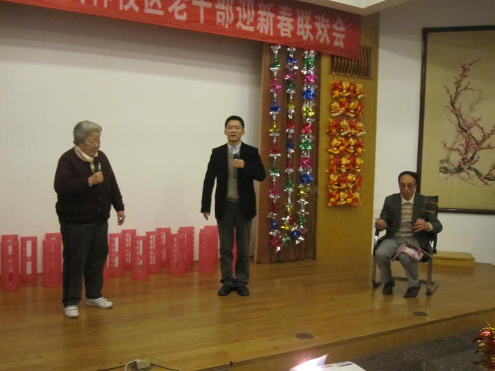 联欢会的开场,首先由老干部工作处处长丁言雯送出温馨的祝福。过去的一年国事、大事连台,老同志所开展的系列活动紧扣建党九十周年、“创先争优”、纪念辛亥革命百年、十七届六中全会精神学习等时代主旋律,通过学习交流、互动对话、表彰先进、专题讲座、参观考察等形式,使得组织生活和集中活动的内容丰盈,收获丰厚。老同志们虽已高龄,但是对组织的信任,对学习的执着,对参与活动的热情让我们为之感动,也成为了我们做好老干部工作的强大动力。新的一年,新的开端,衷心祝福老同志们龙年吉祥,身体安康,生活美满,请老同志们放心,我们会一如既往地做好服务工作。接着,老干部党总支副书记袁鸿昌老师代表老同志祝词。过去的一年是具有伟大历史意义的一年,我们迎来了党的九十年华诞,纪念了辛亥革命一百周年,又是正逢“十二五”规划开局之年。通过认真学习胡锦涛同志在建党九十周年大会上的讲话,重温了党的光辉历史;通过开展创先争优的活动,激励了老同志们更加坚定了理想和信念。在老干部工作处的关心支持下,党总支工作有声有色,又上了一个新的台阶。在充满希望的新年里,党总支工作更要结合老同志的特点,并汲取大家的建议和智慧,以人为本地将工作组织好,开展好。龙年新春将至,祝愿老同志们多多保重身体,乐观健康生活,阖家幸福快乐。