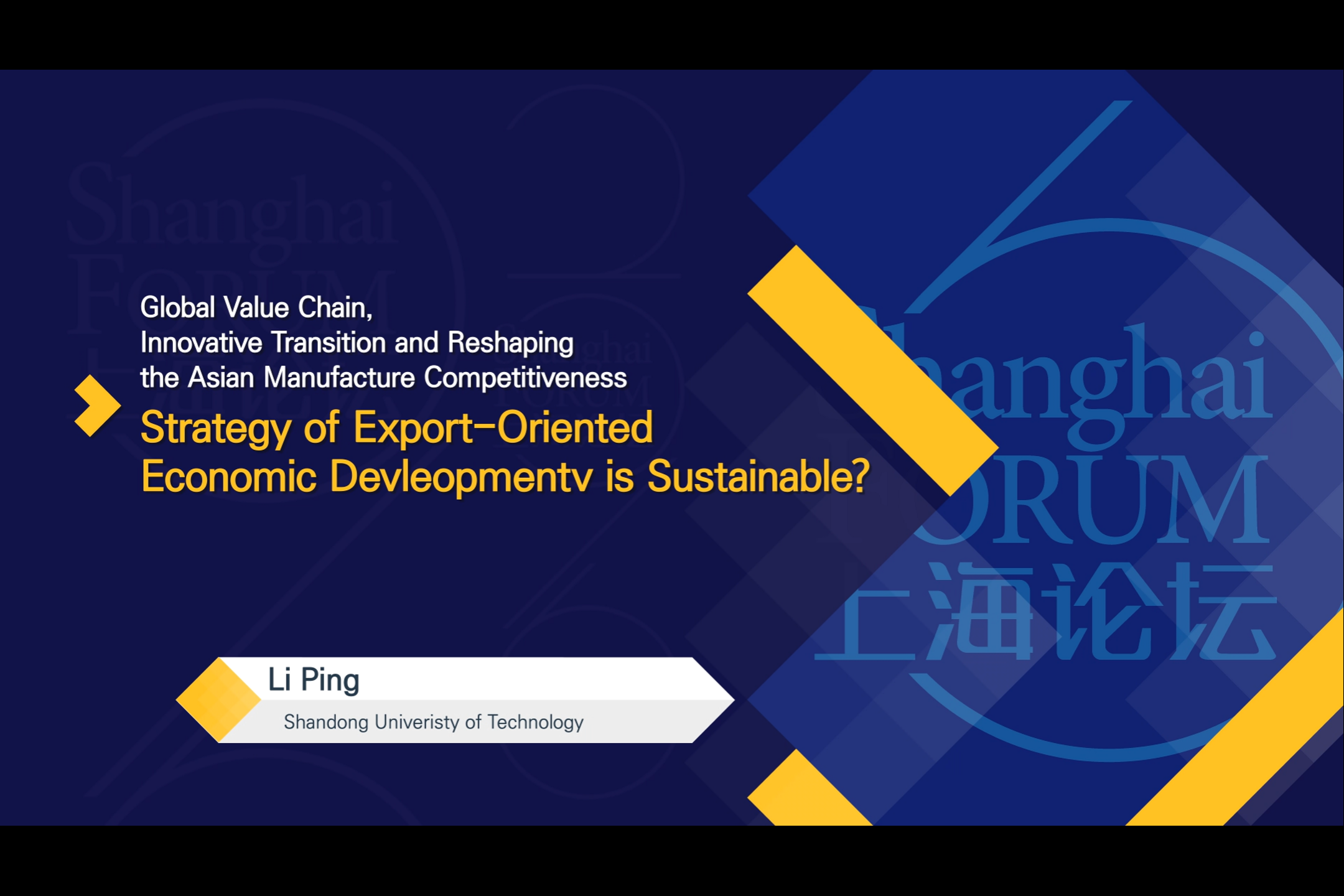 上海论坛2016子论坛 全球价值链、创新转型与亚洲制造竞争力重塑——Li Ping