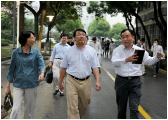 调研座谈会后,朱之文书记在桂永浩副校长、医学院程刚书记等陪同下,冒雨先后去教育部/卫生部医学分子病毒重点实验室、医学神经生物学国家重点实验室、人体解剖学与组织胚胎学系、脑科学研究院、生物医学研究院、医科图书馆、公共卫生学院和实验动物科学部等单位调研听取汇报和意见,并看望了杨雄里院士、闻玉梅院士和曹小定教授。
