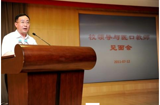 见面会上,桂永浩副校长首先发表了主题为“调结构、聚人心、谋发展”的任职感想。他真诚地说:“今天站在这个讲台上,我为要达到的目标感到责任重大,为被委任的重担而感压力巨大,更为自己的能力和阅历不足而感到谦卑。我感激大家对我的信任和支持,感谢王卫平常务副校长和冯晓源副校长为复旦医科和上海医学院多年来所做出的贡献。在我近期的调研工作中,我感到了蕴藏在广大教师干部中的对上海医学院发展的永不淡去的期盼,对上医在中国医学发展历史的地位和贡献的自豪和对在新世纪复旦医学在中国医学发展中的地位下滑的深深的担忧,我坚信,这可能就是历史发展的阶段中,我们这代人所必需承担的责任,责无旁贷”。