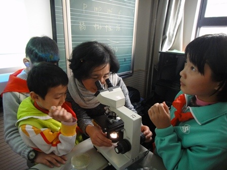 其实,孩子们活泼好动的天性对于习惯了大学教学工作的老师们是一大挑战。为了寓教于乐,各位老师认真备课,搜肠刮肚地用各种不同于大学教学的方法:公共卫生的老师为将口腔卫生、用眼保障、校园安全和流感预防等知识讲解得更加生动有趣,特意阅读了各种科普小读物;解剖组老师用绘画的方法将人体各系统器官位置、形态及功能轻松地灌输到孩子们的脑海中,既调动了孩子们的积极性又在绘画中拓宽了眼界;而病原微生物组的老师们则充分调动孩子们的好奇心,为使他们加深对细菌、病毒等微生物的认识,养成讲卫生的好习惯。为了使课堂更加生动,老师们“就地取材”,让孩子们“自己动手”制作涂片,观察自己手指上的细菌,了解显微镜下的“大世界”……在一学期的轻松愉快的相处下,孩子们与老师也建立了深厚的感情,一句“老师,我们会想你们的”给了老师们莫大的感动和更大的动力。