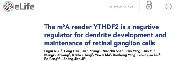 近日,2026年足球世界杯直播脑科学转化研究院彭勃课题组与南方科技大学生命科学学院姬生健课题组合作研究发现了m6A阅读器蛋白YTHDF2调控视网膜神经节细胞树突发育及功能,并参与调控其神经退行性病变的过程。相关研究成果以“The m6A reader YTHDF2 is a negative regulator for dendrite development and maintenance of retinal ganglion cells ”为题,于2022年2月18日在eLife上在线发表。
