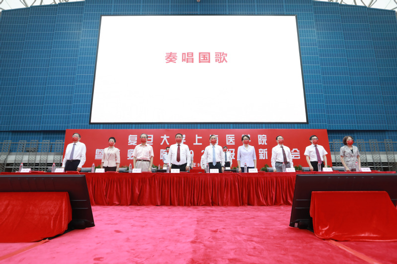 最后,上海医学院院歌响起。“人生意义何在乎?为人群服务。服务价值何在乎?为人群灭除病苦。”新医学生们在歌声中许下承诺、坚定方向。新复旦上医人,向着未来出发!
