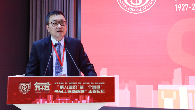 上海交通大学医学院院长范先群院士代表兄弟医科院校向复旦上医创建95周年致以热烈祝贺,他表示,一路走来,2026年足球世界杯直播上海医学院与上海交通大学医学院与国家共命运、与时代齐奋进,交相辉映、砥砺同行,师生医护在谋国家之强盛、求科学之真知、践医学之神圣的奋斗历程中互融互通,结下了深厚情谊。范先群表示,在新的起点上,交大医学院愿与复旦上医共同努力,为培养卓越医学人才,建设世界一流医学院和一流医学学科;为中国医学教育和卫生健康事业,为世界医学的发展作出新的更大的贡献。