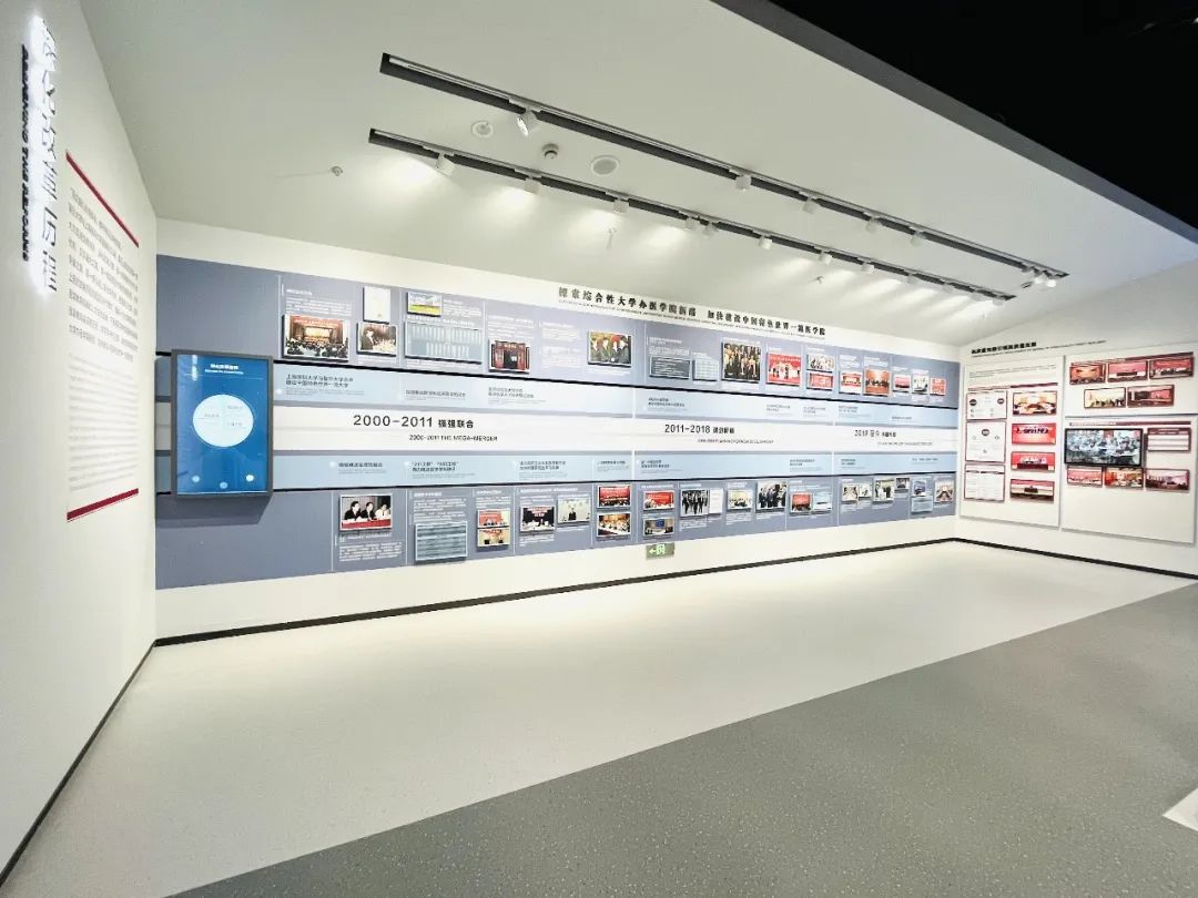 至此,上医文化中心和新的院史馆全面建成。新建成的院史馆位于上医文化中心1至3层,由“始创奠基”“探索发展”“改革振兴”“奋进一流”“携手向前进展”5个展厅以及“医学丰碑”“中国共产党人的精神谱系——上医人的身影”2个专题连廊组成。院史馆汇集照片1001张,实物及复制件171件,馆中众多图片、仪器、用具等皆为首次展出的档案馆藏品。