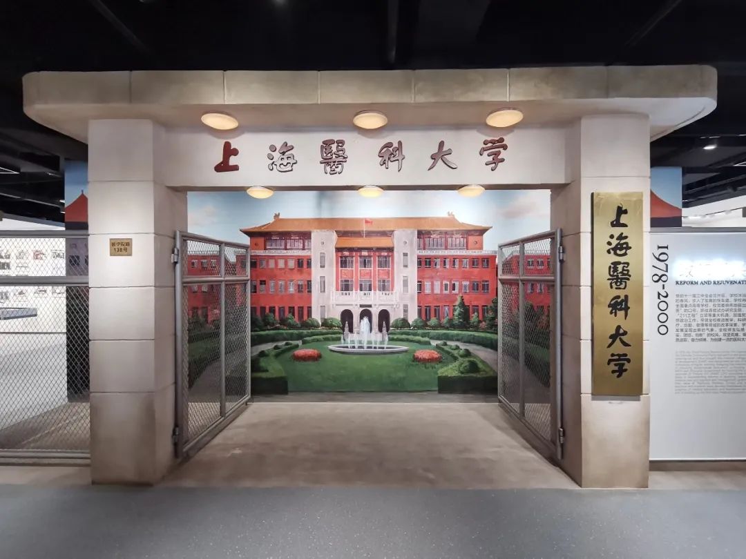 “改革振兴”展厅向众人呈现1978年改革开放以来至2000年步入新世纪期间的上医。展厅入口处复制了上海医科大学老校门,其中校名牌匾为历史原物,覆盖展厅三分之一墙面的手绘校园风景图全面复原了这一时期的校园场景:从东院区到西院区,云霞漫天,枫叶似火。这一时期的上医人抓住历史机遇,攻坚克难、艰苦创业,锐意进取、奋力拼搏,在教学、科研、医疗、管理等方面大胆改革创新,学校各项事业发展呈现出新的气象。