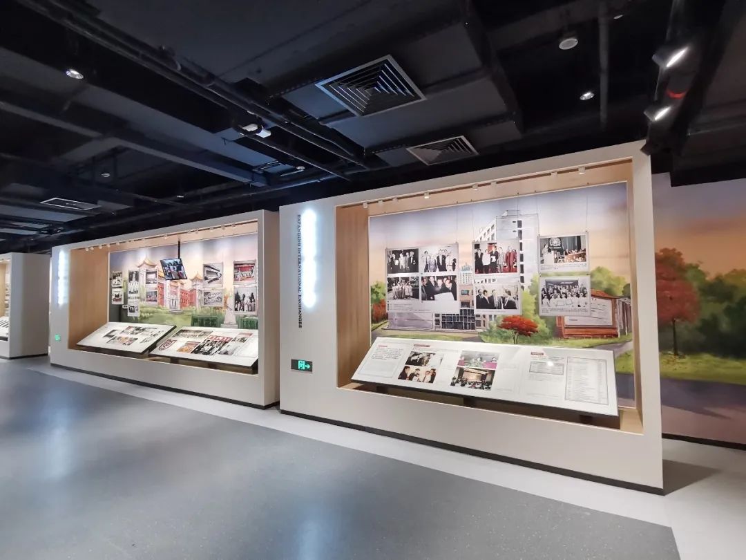 “新馆总面积约1600㎡,在之前老馆280㎡的基础上有了巨大的增量,这无疑对展陈内容和设计都提出了更高要求。”项目的设计方、上海市建筑装饰工程集团有限公司策划师、设计师说,“学校文案工作专班的老师在充分挖掘历史的基础上拓展资料,增加了许多动人的故事,我们根据这些资料和每个展厅的条件,选择了翻板、手绘、雕塑、互动电子屏等多种形式的展现手段。”与此同时,以文案为基础,设计方为每个展厅的展示重点都做了精心打磨:展现颜福庆老校长创办上医历程的全息影片,体现上医人“听党话、跟党走”的人物群雕,模拟外科手术台的人体解剖触摸屏,全方位展示新上医布局的电子沙盘,可呈现上医人祝福的球面互动屏……