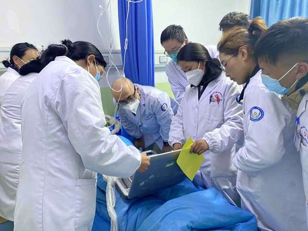 看着病人红肿的下肢,阿力木江判断:“病人应该患有下肢静脉血栓,此时转诊血栓脱落导致肺栓塞的风险——从仲巴县到日喀则市区有八九个小时的车程,如果路上病情发生变化,病人危险很大。我们应该先对病人进行进一步诊断,最好在本地开展救治。”随后,他带着当地医护人员对病人开展救治,实施检查后证实该患者左侧股静脉血栓栓塞,静脉回流已完全中断,与日喀则人民医院超声科陈坤主任视频会诊后,一致决定留院积极抗凝治疗,待病情稳定后再行转院。,病人最终在仲巴县人民医院就转危为安。