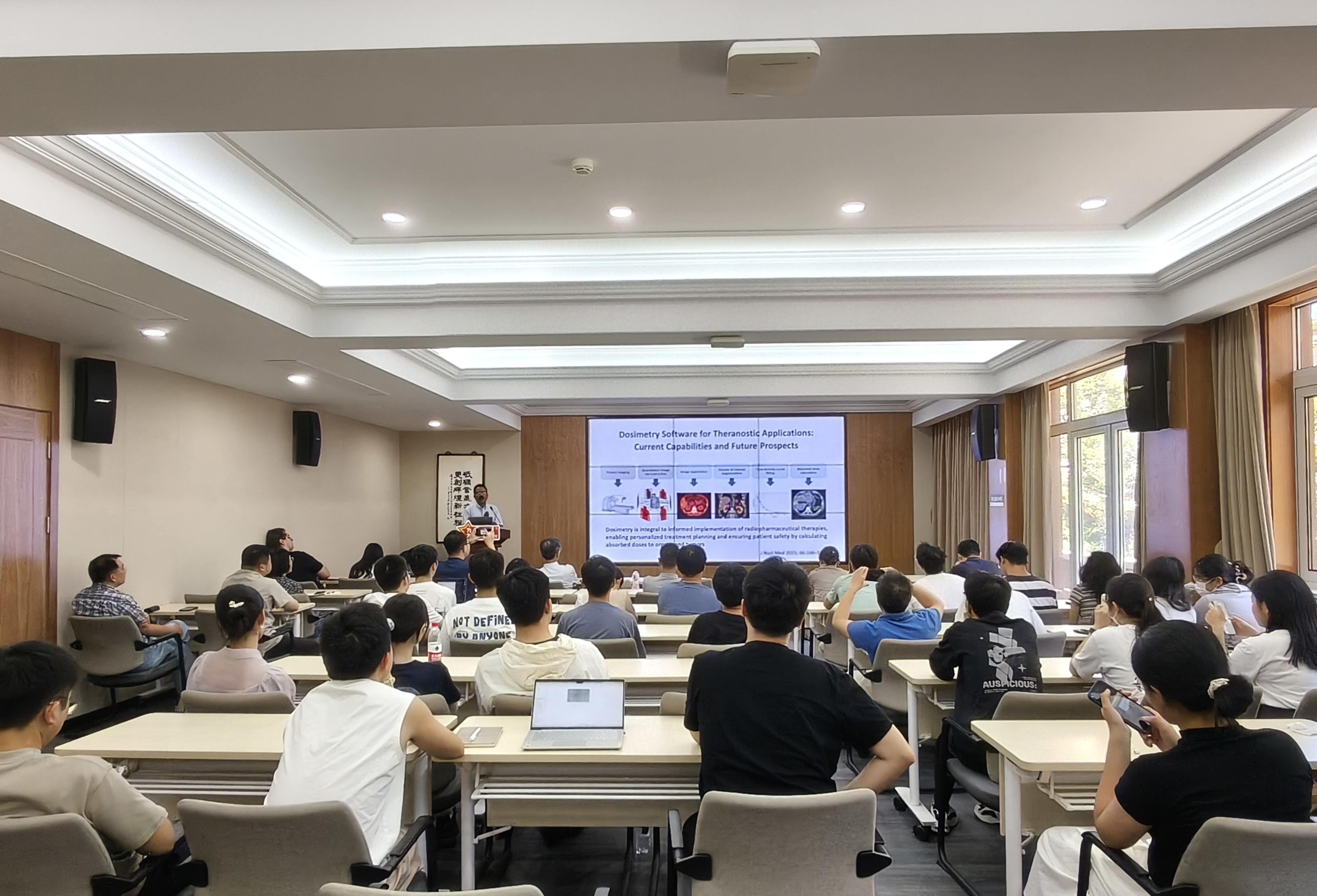 学术报告会上,Mahesh教授从全球视角出发,分享了医学物理的发展现状与未来趋势。从光子计数CT、核医学诊疗,锥形束CT在放疗中的应用,FLASH放疗新技术以及磁共振成像等方面,分享了放射诊疗新技术的优势以及给临床带来的更多可能性。接着,Mahesh教授分享了AI技术在医学物理中的应用前景,特别是在放射治疗中,从治疗决策、治疗前成像、治疗计划验证、治疗实施到疗效跟踪的各个方面,AI技术起到的辅助作用。他强调,医学物理师应该拥抱AI,AI取代不了医学物理师,但是会用AI的物理师会取代不会用AI的物理师。讲座最后,Mahesh教授特别强调了放射诊疗中医患沟通的重要性以及技巧,提醒大家避免将患者误认为专业人士或一无所知,只有建立有效沟通,才能真正提升患者的诊疗体验与满意度。在提问交流环节,Mahesh教授围绕听众提出的多个专业问题进行详细解答,分享其在科研与临床实践中的深刻见解,为在场校内外师生和校外同行带来极具启发性的思考。