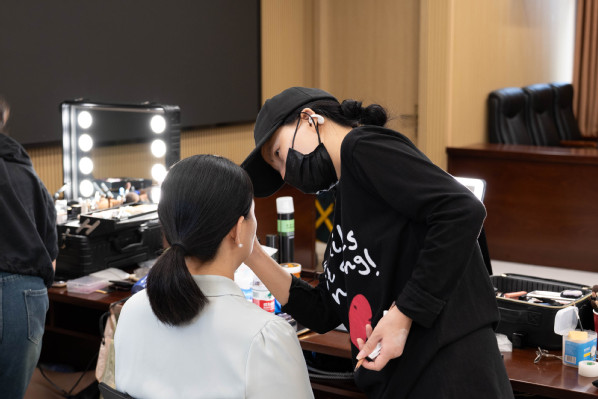 活动现场,化妆师们精心为老师们打造优雅得体的妆容