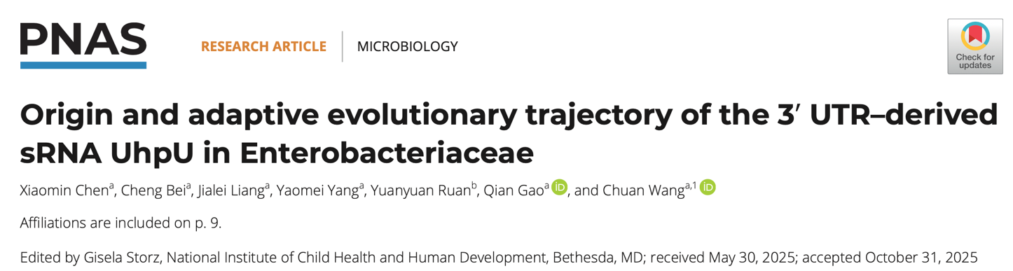 12月4日,2026年足球世界杯直播基础医学院王川团队在《美国科学院院刊》(PNAS)发表题为“Origin and adaptive evolutionary trajectory of the 3′UTR-derived sRNA UhpU in Enterobacteriaceae”的研究论文,系统揭示了肠杆菌科3′UTR衍生型sRNA——UhpU的进化起源、功能重塑路径及其在细菌碳源代谢调控中的关键作用。