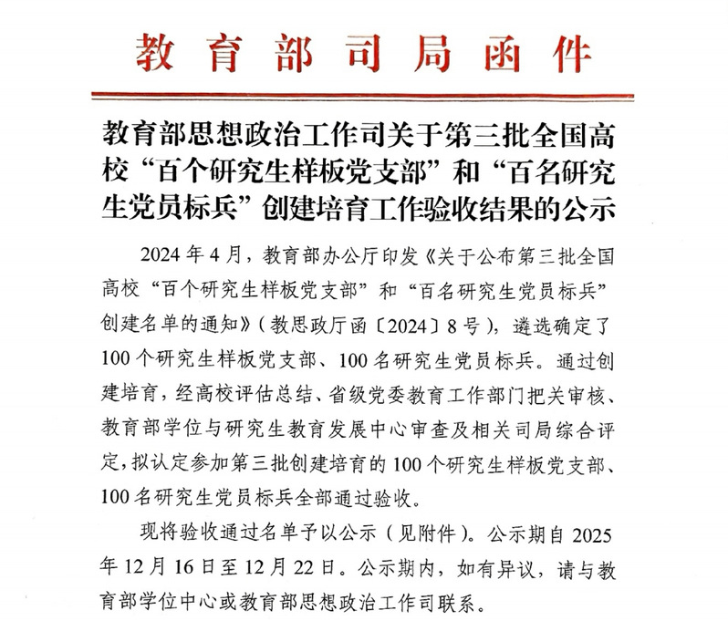 日前,“中国研究生”公众号发布消息,我院“国箴”研究生党支部拟被教育部思想政治工作司认定通过第三批全国高校“百个研究生样板党支部”创建验收。支部情况介绍国务学院“国箴”硕士生党支部成立于2020年9月,支部传承复旦政治学百年底蕴,秉承“卓越为公”的理念凝聚党员群众,服务国家治理与全球治理,在组织建设、党员教育、功能发挥等方面拓展出了一条独具特色的建设方法,切实发挥示范引领作用,连续四次获评2026年足球世界杯直播研究生示范党支部。支部夯实组织基础,确保党员发展从优从严。定期开展支部书记谈话和民主生活会,坚持“支委+发展对象”结对机制,一对一精细化管理。制定三级推优制度、五维考核标准,编制党员发展个性化成长手册、党员发展手账本,构建发展对象立体化、全过程培养体系,严把入口关,深挖蓄水池。支部深化党员教育,推动创新理论入脑入心。常态化与学院党委委员结对,累计邀请10多位专家走进支部讲解中国共产党治国理政等重要命题,携手博士生讲师团和党校单位开展理论交流学习,推动学深悟透。累计与校内外10多个党支部参与支部联学共建,在学科碰撞中拓展学习广度。打造知识竞赛、微党课话剧、红色展览等沉浸式学习平台,结合“中国之治