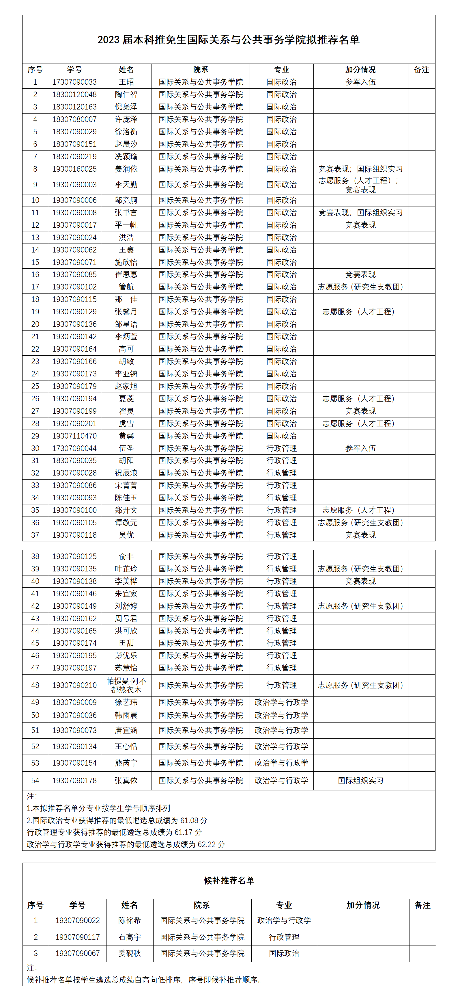2023届本科推免生国际关系与公共事务学院拟推荐名单