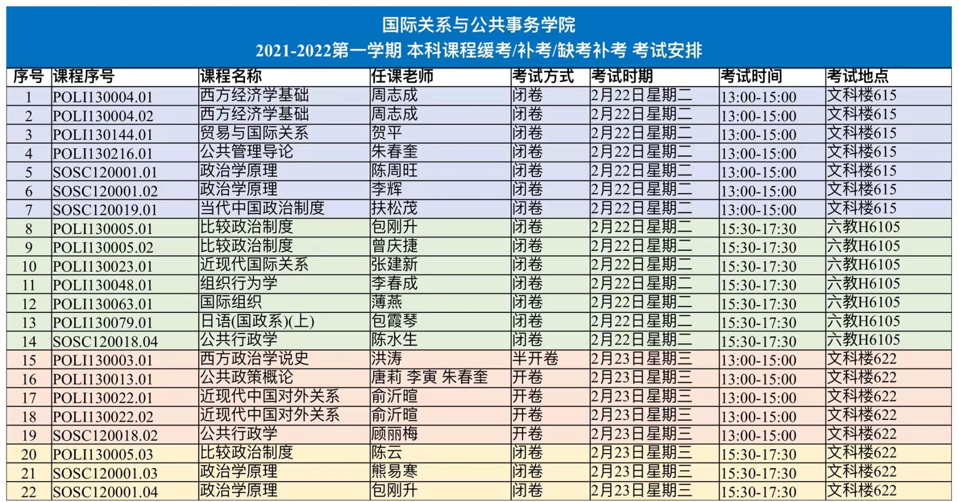 2021-2022学年第一学期国务学院本科课程补缓考信息