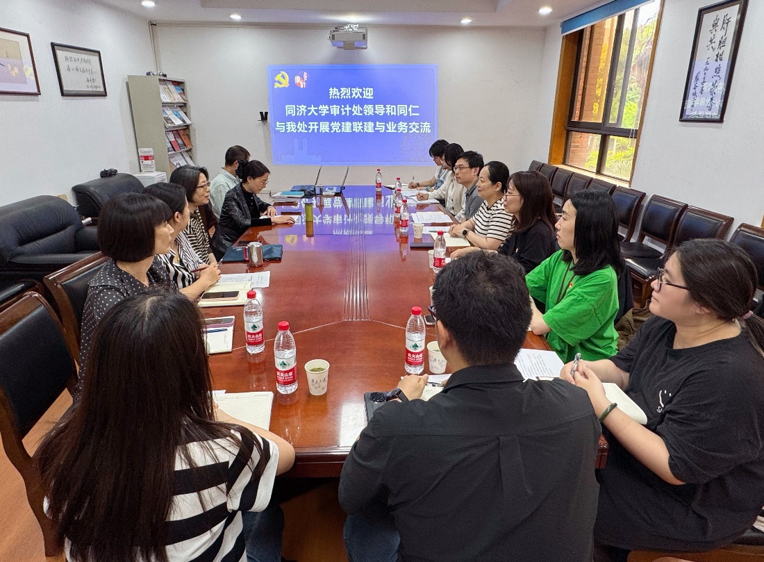 2025年5月28日,同济大学审计处周琳处长、谭萍副处长等一行9人与我处开展党建联建与业务交流,深入学习贯彻党的二十大精神、中央八项规定精神,深化党建与业务深度融合,互相学习交流借鉴先进经验与理念。