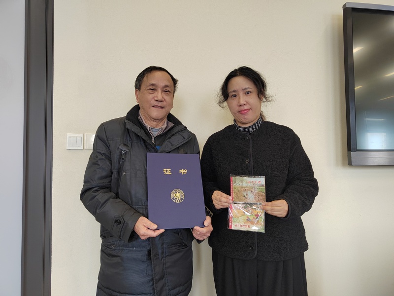 上医档案馆田园老师代表档案馆对何毓嘉老师的热心捐赠表示感谢,并向何老师颁发了捐赠证书。