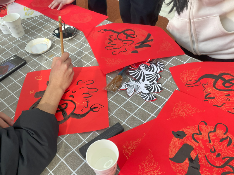 在自由体验的环节,现场热闹非凡。春联现场墨香四溢,气氛温馨热烈。师生们手持毛笔,在红纸上挥洒自如,一副副精美的春联呈现在大家眼前。这些春联充满了师生们的真挚情感,有对未来的美好祝愿,还有对未来科研学习的热切期待,无不传递着温暖和幸福。剪纸的现场,在辛旭光老师的指导下,师生们纷纷拿起剪刀,一刻一剪之间,一幅幅精巧绝伦的剪纸作品便栩栩如生地展现在眼前,无不感叹传统技艺的高超和精妙。