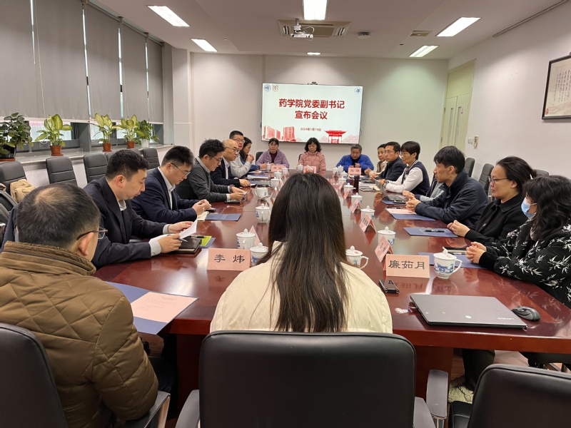 2024年1月19日上午,药学院在晶晖厅举行党委副书记宣布会议。校党委组织部副部长童一明、上海医学院党委组织部副部长闫兆伟出席会议。学院党政班子全体成员、教工党支部书记、学工辅导员代表等参加会议。会议由学院党委书记王建新主持。