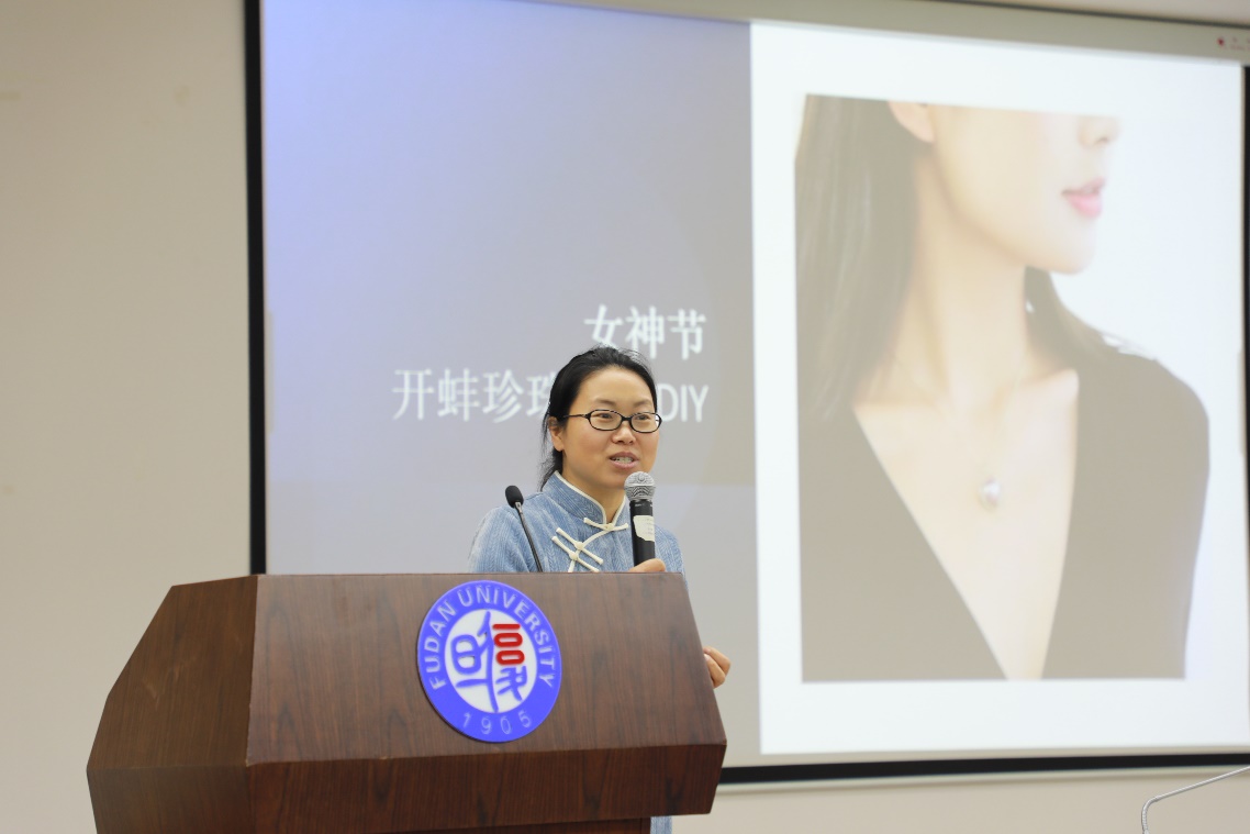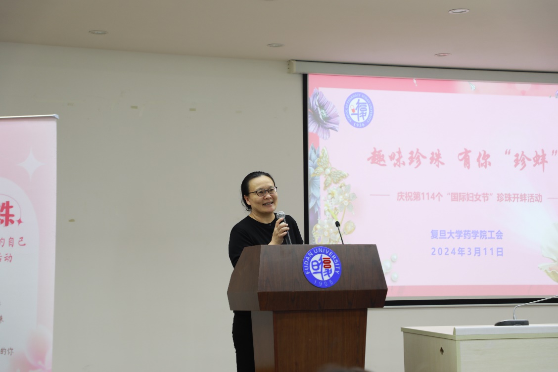 3月11日下午,为庆祝第114个“国际妇女节”,丰富教职工的文化生活,药学院珍珠开蚌DIY手作活动在张江食堂三楼小报告厅举行。本次活动还邀请了微电子学院的老师们参加,约50人共聚一堂,活动由药学院工会主席董继斌主持。