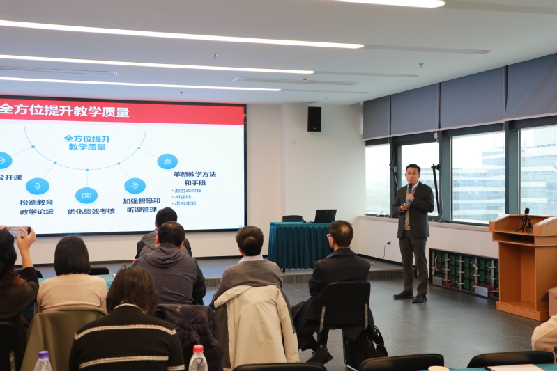 副院长周璐从总体情况、基金项目、科学研究和科研评估四个方面介绍了学院的科研工作情况,通过一系列数据呈现了科研工作面临的新形势与新要求,提出要进一步完善学院科研评价和管理体系,开展有组织的科研,深化学科交叉合作,推进高水平科研成果的不断产出。