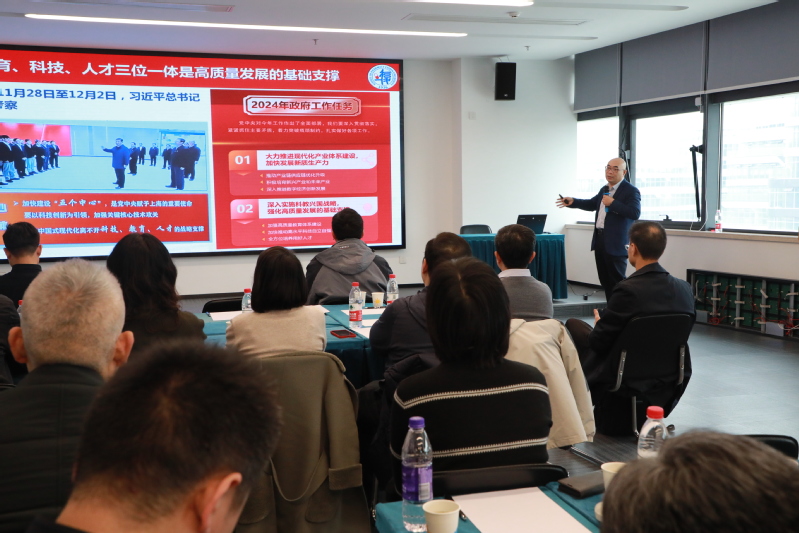 学院党委书记王建新以“迎难而上 抢抓机遇 努力开创药学发展新格局”为主题,全面介绍了学院学科建设的发展现状,并结合数据分析,深入剖析了学院在师资队伍建设、人才培养、科研与转化、国际合作等方面存在的问题和挑战,重点介绍了学院2024年主要工作任务。他强调,学院要坚持“顺天时 量地利 聚人和”的发展思路,把握国家需要和学科前沿,对准地方和产业实际需求,抢抓生物医药产业发展的大好机遇,以高质量党建引领推动教育、科技、人才一体化发展,加强学科交叉融合,稳步推进教学改革,以新药创制联合研究中心、衢州复旦研究院等平台建设为抓手,推动高水平科研与成果转化,凝聚全院力量,纵深推进一流药学学科与“第一个复旦”建设。