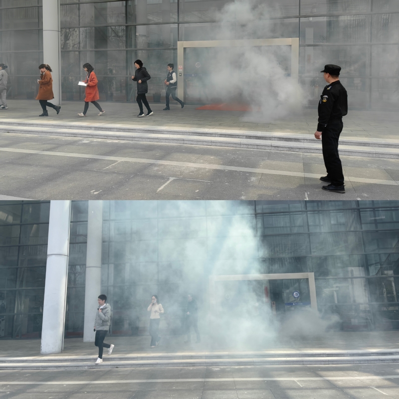 培训会后,学院还组织了消防逃生演练。当各楼宇内的消防警报声响起,400余名师生迅速而有序地穿越滚滚浓烟,安全到达集合点。之后,50余名师生还参加了灭火器、灭火毯的实操训练。