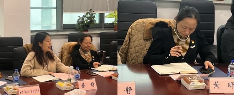 新闻学院研工组长蔡静、高分子科学系研工组长黄晔解答学生支部书记提问