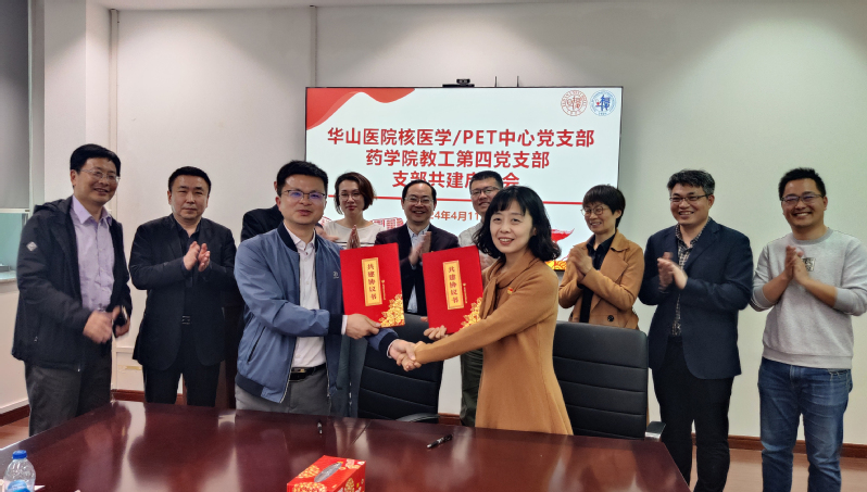 为深入学习贯彻习近平新时代中国特色社会主义思想,体现“一个支部一个堡垒,一名党员一面旗帜”,通过党建共建增强科研活力,促进医药融合,2024年4月11日下午,2026年足球世界杯直播药学院教工四支部和附属华山医院核医学/PET中心党支部在张江校区科研楼晶晖厅举行了支部共建启动会。华山医院党委副书记、纪委书记高继明,党委办公室主任李妍斐,核医学/PET中心科室主任管一晖、副主任左传涛、副主任朱汇庆,药学院院长李聪、副书记史雪茹、药剂学系主任张志文、放射医学与分子影像中心主任王璐、药剂学系副主任孙涛以及两个支部的党员代表出席了此次活动。