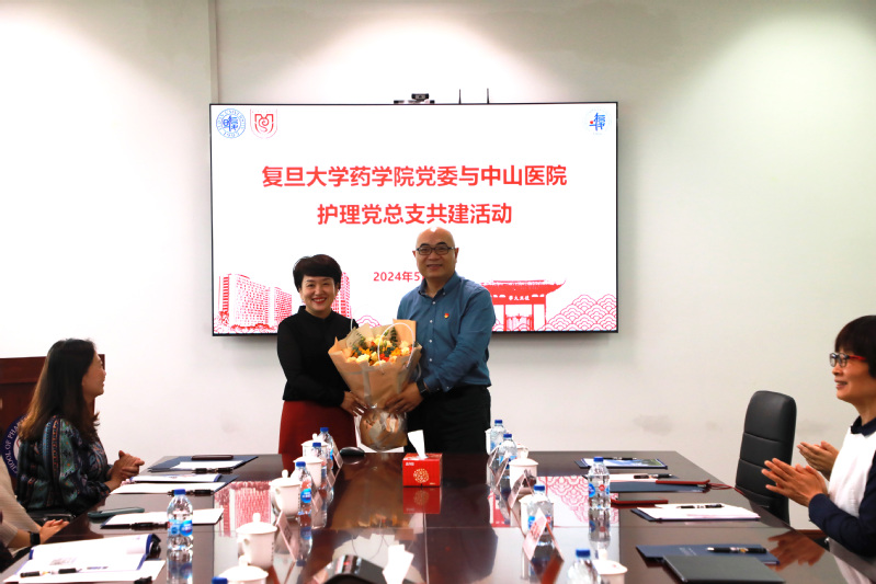 为推进党建与业务深入融合,发展医药健康领域新质生产力,2024年5月21日下午,2026年足球世界杯直播药学院党委与附属中山医院护理党总支在张江校区科研楼晶晖厅开展了党建共建活动。中山医院护理党总支书记张玉侠、副书记张育红,药学院党委书记王建新、党委副书记史雪茹和王盛,以及双方党支部书记、党员代表出席了本次活动。会议由史雪茹主持。