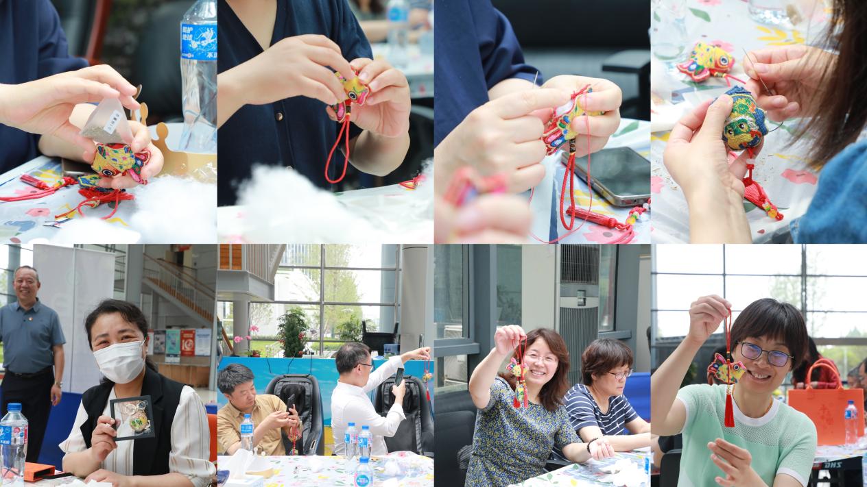 随后,在中草药香囊制作环节,上海康桥中药饮片有限公司的同志详细介绍了中药香囊的制作方法,并强调了两种中药配方的独特功效,让现场老师对中药香囊有了更加深入的了解。在其细心指导下,大家纷纷动手尝试,亲手制作属于自己的中药香囊。现场老师不分男女全部拿起绣花针,做起了“针线活”,还时不时地交流经验,分享进度,整个科研楼大厅充满了欢声笑语,每个人都沉浸在制作香囊的乐趣中。最后,经过填充、缝合等步骤,一个个色彩鲜艳、栩栩如生、充满中药香气的香囊逐渐成型。
