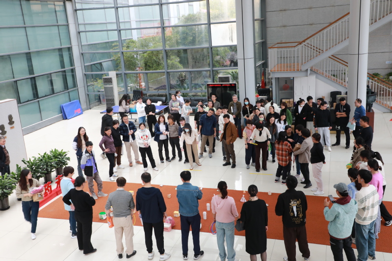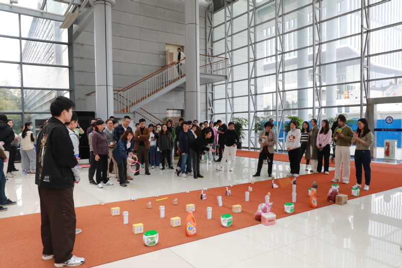 比赛结束后,老师们来到科研楼大厅的套圈现场,依次排队准备将心仪的小礼物“套”回家,礼物虽小却给大家带来满满的喜悦和幸福感。