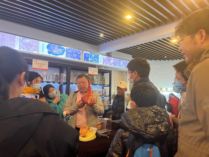 离开人体馆,进入病理馆则由志愿者带领小朋友进行一对一参观讲解。自行参观的过程中志愿者与小朋友有了进一步的交流,面对数量丰富的病理标本,小朋友们主动提出自己的疑惑寻求志愿者的解答。除此之外,3D打印标本、虚拟模拟展示仪......更是吸引小朋友的眼球,一一在志愿者的带领下进行参观体验。志愿者讲解过程中也为了加深对小朋友的了解,主动询问其知识范围、学习情况等,双方逐渐变得熟悉。