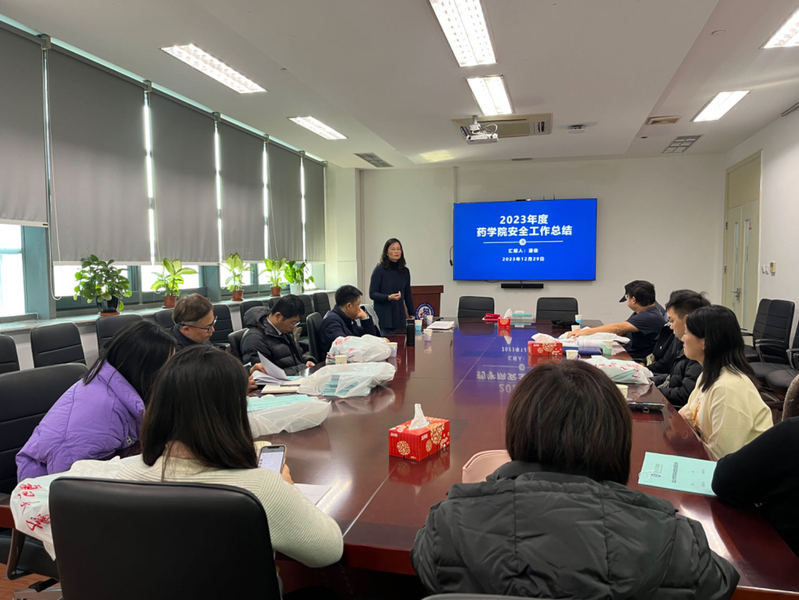 12月29日,2023年最后一个工作日,药学院在晶晖厅召开年度安全工作总结会议。药学院副院长潘俊、各系/中心安全员等近20人参加会议。