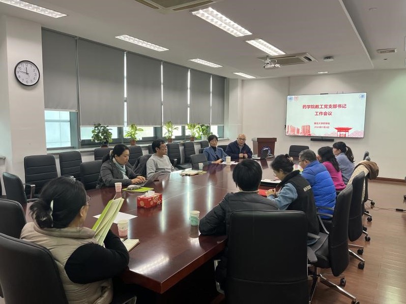 2024年1月3日,药学院在科研楼晶晖厅召开教工党支部书记工作例会。会议由药学院党委副书记史雪茹主持,特别邀请药学院党委书记王建新到场作学院人才工作报告。学院教工党支部书记、支委和组织员参加会议。
