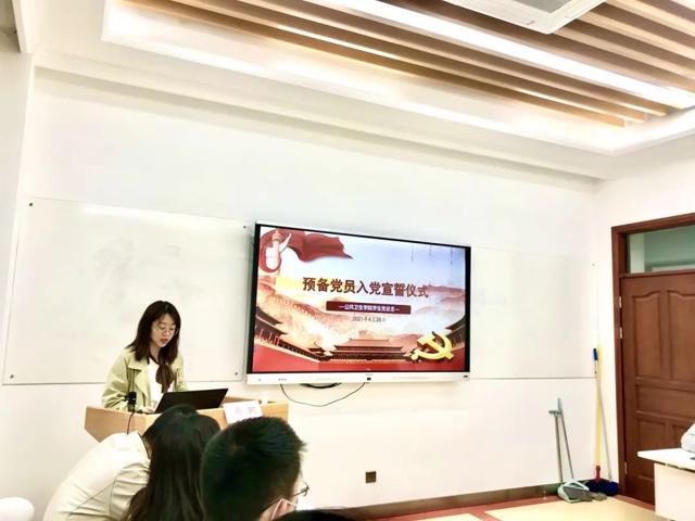 2021年4月28日,公共卫生学院学生党总支新发展预备党员入党宣誓仪式在枫林校区8号楼109会议室举行,学院党委书记罗力老师、党委副书记郁颖佳老师、学工组长尚珂老师、2020级研究生第一党支部书记刘少杰以及2020年下半年新发展的26名预备党员出席,仪式由尚珂老师主持。