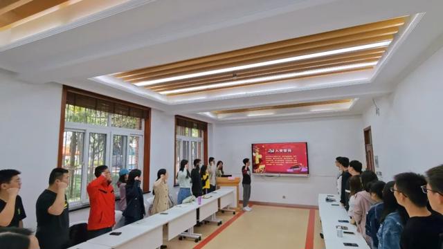 宣誓仪式是庄严神圣的一刻,是对预备党员进行入党教育的重要环节。在2020级研究生第一党支部书记刘少杰同志的带领下,全体党员右手握拳,庄严宣誓。新党员宣誓铿锵有力,面向党旗许下对党组织最庄严的承诺。