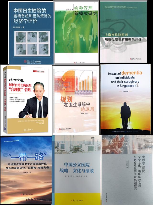 本教研室紧扣时代脉搏,把握国家需求,立足学科优势,聚焦医院管理(公立医院改革、现代医院管理制度建设)、卫生技术评估(安全性、有效性、经济学、社会适宜性与伦理学等)、全球卫生三大研究方向展开国际国内理论与实证研究,主持包括国家科技部、国家自然科学基金、国家社科基金、国家卫生健康委员会等多项纵向项目;以及世界卫生组织、世界银行、美国中华医学基金会等国际合作项目等;获得中华医学科技卫生管理奖、上海市科技进步三等奖、上海市医学科技进步奖等多项奖项。团队基于长期的国内外学术交流和合作具有较好的学科先发优势,近5年来还拓展了与公共管理学、新闻传播学、公共政策学、人文社会学等相关学科的紧密合作。教研室的研究成果呈“服务决策、跨学科、多元化”的特点,产出形式丰富多样,承担30余项重大科研项目(表2),270余篇学术论文、近10本专著(图5)等体现了学术研究影响力;提交给中央相关部门的10余篇研究报告体现了咨政功能;组织2次重大国际会议加强了学术交流与成果传播,扩大了本团队的国内外影响力。