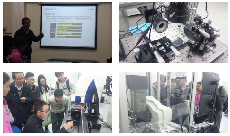 到达先进材料楼后,张祥朝老师首先为大家作了一个简单的讲解,全面介绍了工程中心的研究领域、主要工作、技术水平、主要设备仪器、和在研的工作项目。之后在实验室里,同学们一一观看了动态干涉仪、白光干涉仪、扫描式轮廓仪、激光扫描共焦显微镜、三坐标测量机、以及多种切削加工、超声加工与精细抛光的精密加工设备。