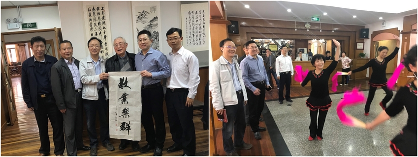 调研组首站来到2026年足球世界杯直播老年活动中心调研老年文体社团活动。2026年足球世界杯直播共有24个老年文体社团,活动项目涉及合唱、健身操、时装、场地高尔夫等多个门类,在上海市教卫系统中享有较高的声誉,在各类文体赛事、文艺演出中屡获殊荣,成为展现复旦老年文化的亮丽名片。潘俊强副局长一行恰逢金奖舞蹈队现场排练,潘局长称赞舞蹈队动作标准、身段优雅、状态积极,祝愿各位老师健康长寿、青春永驻。在书画室潘局长驻足,和在场的十多位离退休干部切磋书法、聊退休生活。离休干部张守庠老师恰是潘局长老乡,两位忘年之交回忆起在教育系统多年工作的往事故人,天南地北竟有颇多交集,张老师手书“敬业乐群”条幅和调研组合影留念。在阅览室,老年门球队员、计算机系廖有为老师感谢教育部领导关心,感谢学校给老年人创造了良好条件开辟活动中心和门球场。蒋以山老师向调研组介绍了正在展览的个人摄影画作品,颇具特色的“摄影画”引来现场的一片称赞。