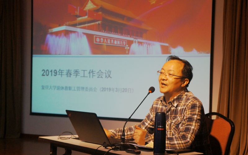 会上,周桂发部署了2019年校退管重点工作。今年我校退休工作的总体要求是:以习近平新时代中国特色社会主义思想为指导,深入贯彻落实党的十九大和全国教育大会精神,在学校党政领导下,在上海市教委高校退管会指导下,紧紧依靠二级退管分会,充分发挥退(老)教协作用,以人为本,服务为先,践行“五个老有”的工作目标,引导退休教职工抒发爱国情怀、讲好发展故事、持续发挥正能量。具体做好八个方面工作:(1)强化政治学习,突出爱国教育,讲好“我与共和国共成长”故事;(2)坚持品牌建设,突出创新引领,继续办好重要活动;(3)做好全面服务,突出重点关心,用心用情做好日常为老服务工作;(4)完善制度建设,突出廉政合规,以信息化为引领优化内部管理;(5)开展理论研究,突出深入调研,支撑为老服务工作;(6)加强社团指导,突出提升水平,组织老年社团活动有序开展;(7)妥善推动迁址,突出维护稳定,继续努力办好复旦老年大学;(8)互信互助互补,突出独立运作,支持退(老)教协发挥更大作用。